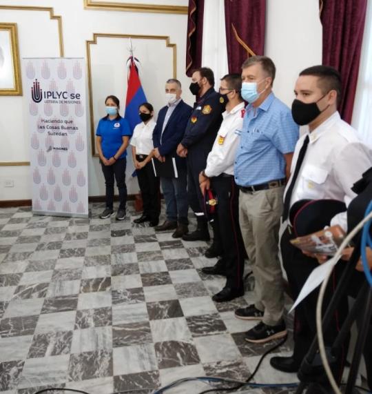 Reunidos en la Sala de Situación de la Casa de Gobierno, el acto contó con la presencia de Oscar Herrera Ahuad, Gobernador de Misiones; Carlos Arce, Vicegobernador; Juan Cabandié, Ministro de Ambiente y Desarrollo Sostenible de Nación; Héctor Rojas Decut, Presidente del directorio del IPLyC S.E; Adolfo Safrán, Ministro de Hacienda de Misiones; Víctor Kreimer, Ministro de Ecología; Waldemar Laumann, Presidente de la Federación Misionera de Bomberos Voluntarios, entre otros.