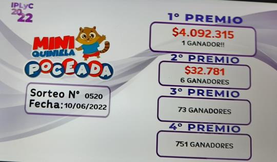 En el sorteo correspondiente al viernes 10 último, la Mini Quiniela Poceada Misionera del Instituto Provincial de Loterias y Casino (IPLyC S.E) sumó un nuevo ganador en la tierra colorada.