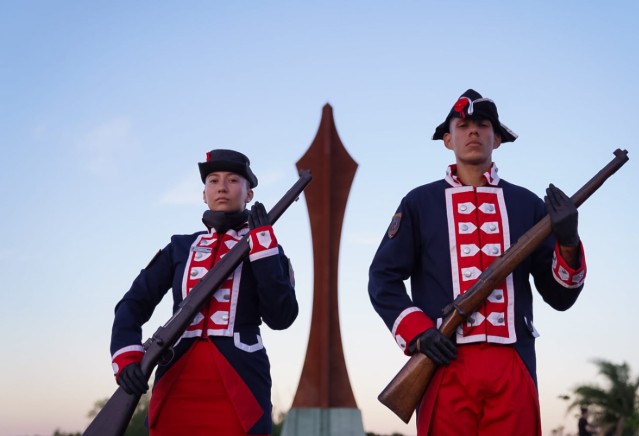 La ceremonia comenzó con el encendido simbólico del fogón histórico de Mbororé, gesto que evocó a los combatientes de la batalla. Posteriormente se entonaron las estrofas del Himno Nacional Argentino y “Misionerita”, interpretadas por la Agrupación Patriótica “La Melchora”, dependiente del Ministerio de Cultura.