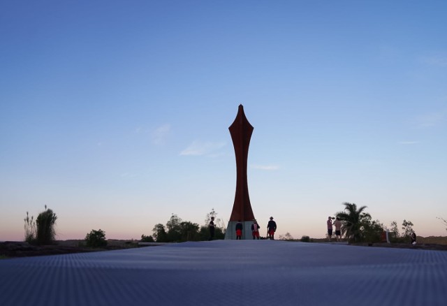 El espacio también incluye un sendero interpretativo y un monolito que simboliza una lanza guaraní en homenaje a quienes participaron de la defensa del territorio.