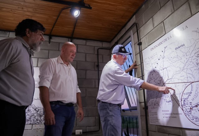 Durante la visita también se realizó el descubrimiento de una nueva pieza que se incorpora al espacio: un cuadro que representa a uno de los padres jesuitas que acompañaron a los guaraníes durante la gesta. La obra fue realizada por el artista y docente Eduardo Sánchez, uno de los impulsores de la puesta en valor del sitio.