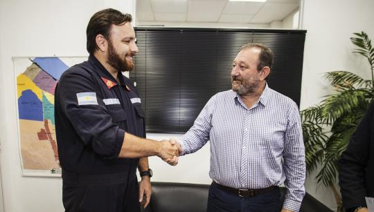 La oficialización del aporte tuvo lugar el pasado 2 de mayo con la participación del Subjefe de Obras Complementarias de Yacyretá, Dr. Adrián Bellone; el presidente de la Asociación de Bomberos Voluntarios Posadas, Alejandro Ciuccio, y otros.