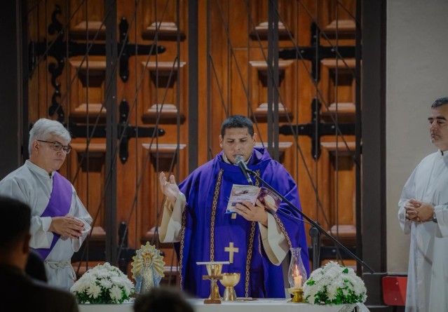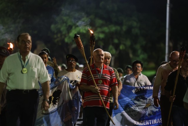 Previo a la vigilia, se realizó una misa de campaña en la explanada de la Catedral de Posadas, ubicada en la plaza 9 de Julio, oficiada por el presbítero Víctor Benítez. En ese espacio se bendijeron nueve antorchas en homenaje a los soldados misioneros caídos en combate: Roberto Estévez, Alfredo Gregorio, Orlando Illanes, Carlos Krause, Martín Maciel, Miguel Meza, José Ríos, Saturnino Sanabria y Miguel Sosa.