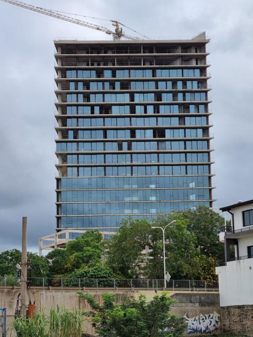 Así, actualmente avanzan los cerramientos de la piel de vidrio que acompañarán, una vez concluida la obra, la vista privilegiada del Río Paraná otorgada por su ubicación sobre Av. Costanera y Av. Marconi.