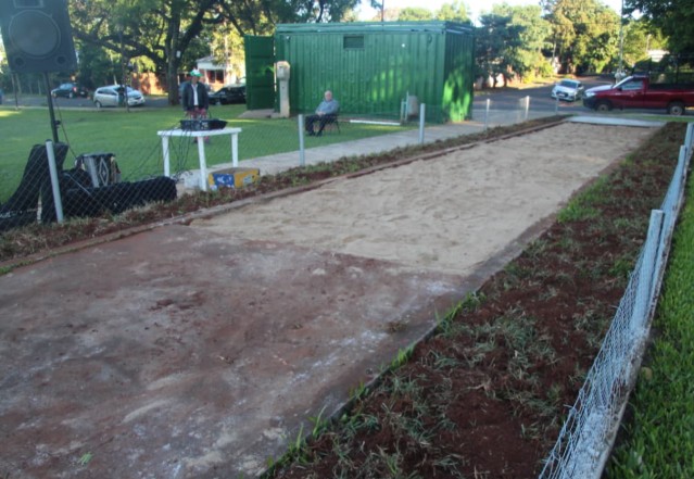 En la Plaza "El Libertador", ubicada en el barrio homónimo, quedó oficialmente inaugurada esta tarde una cancha de tejo, la cual tiene la particularidad de ser la primera emplazada en un espacio público de la ciudad de Posadas.