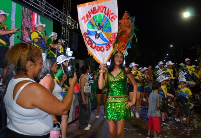 La apertura estuvo a cargo de la comparsa Beisha Carioca (de Itaembé Miní), que celebró sus 18 años de trayectoria. Seguidamente, Las Bahianas del Club de Abuelos Centenario cautivaron al público con sus atuendos típicos y su carisma. La noche continuó con el despliegue de las agrupaciones Afrodita, Guazú Samba, Daysi Samba, Sambatuke y Arco Iris Fusión, además de diversas escuelas de danza de la zona que sumaron ritmo y color.