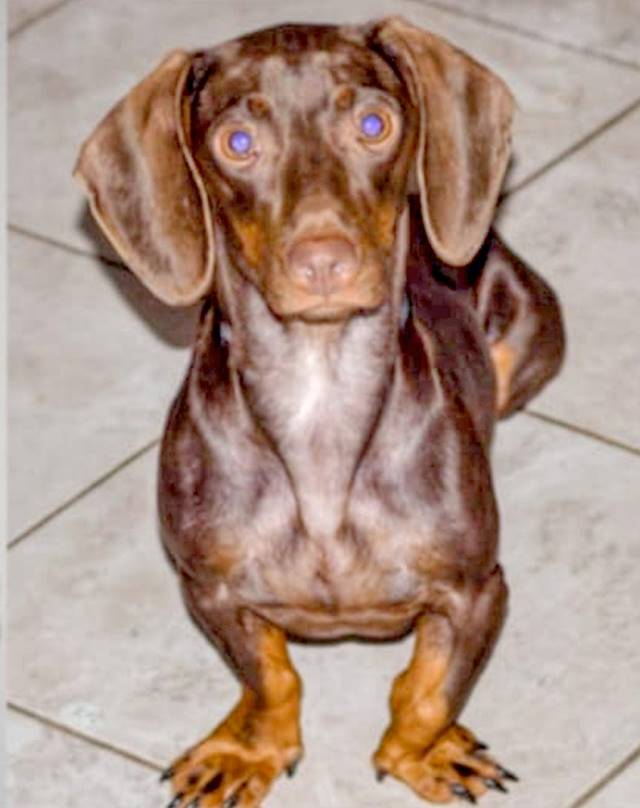 Salchicha color chocolate y corbatita de pelitos blancos en el pecho, no es cachorra, es muy juguetona y no sabe andar sola en la calle.