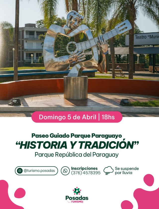 Por su parte, el sábado 4 de abril, de 8:30 a 12:00 hs, se realizará un “Paseo guiado por el casco céntrico”, partiendo desde la Plaza 9 de Julio. Más tarde, a las 18:30 hs, se desarrollará el paseo “Guardianes del Monte: Mitos y Leyendas Guaraníes” en el Jardín Botánico, una experiencia que pone en valor el patrimonio de la identidad misionera con relatos de la selva y personajes mitológicos locales. También, a las 18:30 h, seguirá el programa cultural “Posadas amiga de las infancias” con la temática “La ciencia es un juego” en el Parque de las Fiestas.