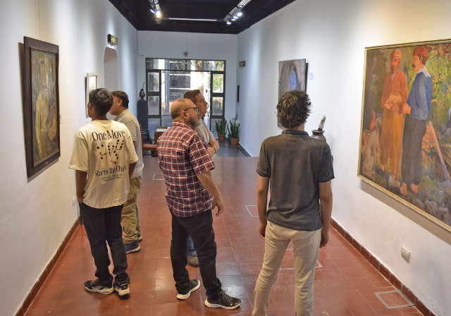 La exposición también rinde homenaje a los fundadores y muralistas del Palacio: “Tenemos cuadros de los artistas que tienen que ver con la historia del Palacio del Mate y del Museo, que son quienes pintaron los murales del Palacio, quienes lo fundaron. Acá tenemos obras de Lucas Braulio Areco, de Mariano Areu Crespo, y también exponemos las actas de fundación del Museo. Es una forma de contar la historia de cómo fue pasando el Palacio y el Museo en estos 73 y 77 años”, en palabras de Forlín.
