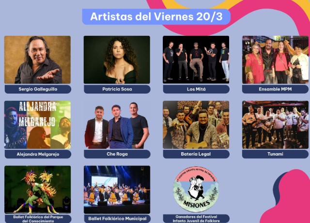 En tanto, el sábado subirán al escenario Los Campedrinos, FMK, Evanna Sanz, Caramba, Vanesa Avellaneda, Chamamé Chamigo y Banco Local.