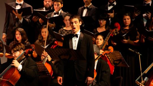 El solista de la noche será Juan Mierez, en violín, bajo la dirección del Maestro Diego Salazar Henning.