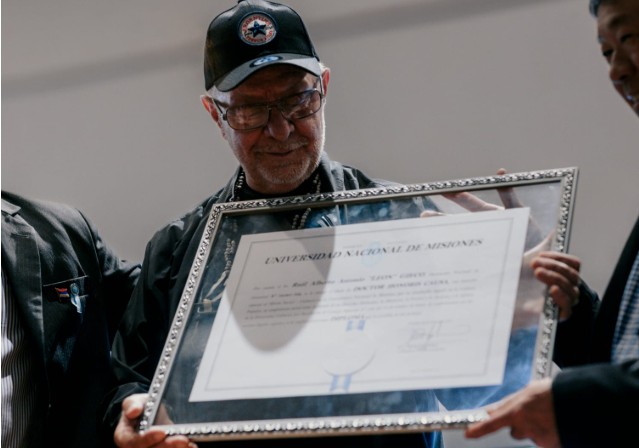 La Universidad Nacional de Misiones (UNaM) entregó el título de Doctor Honoris Causa, con mención especial al mérito social y cultural, al músico, compositor y militante social Raúl Alberto Antonio “León” Gieco, en reconocimiento a su destacada contribución a la cultura popular y su compromiso con las causas sociales.
