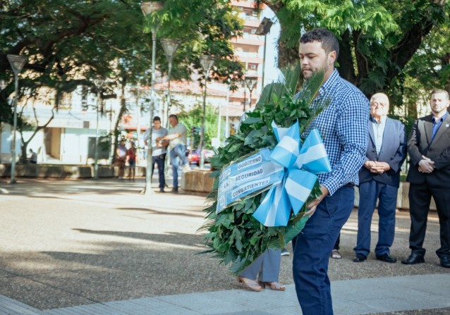 El presidente del Honorable Concejo Deliberante, Ing. Daniel Vigo, encabezó la ceremonia que contó con la presencia de representantes del Gabinete municipal, el Comando de Brigada de Monte XII y la Asociación Sanmartiniana. En ese marco, las autoridades intervinientes depositaron una ofrenda de laureles en el busto que inmortaliza la memoria del General José de San Martín.