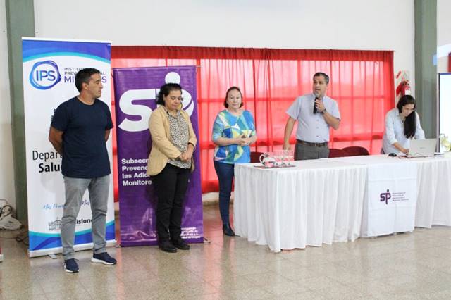 En la apertura de la jornada participó el Subsecretario de Prevención de Adicciones y Monitoreo Territorial, Roberto Padilla, en representación del SPEPM Hugo Giménez y el Lic. Luis Viarengo, por Asociación de Institutos Privados de Educación de Misiones; Roxana Cáceres, Jefa del Departamento de Capacitación de la Subsecretaría de Prevención de Adicciones y Monitoreo Territorial; Constanza Logegaray, Jefa del departamento de Salud Mental del IPS.