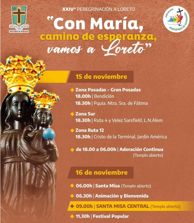 La Diócesis de Posadas invita a toda la comunidad a participar de la XXIV Peregrinación Diocesana al Santuario de Loreto, un encuentro de fe y esperanza que cada año convoca a miles de fieles de toda la región. En esta oportunidad, el lema elegido es “Con María, camino de esperanza, vamos a Loreto”, en sintonía con el espíritu del Jubileo 2025, que tiene como eje el llamado a ser “Peregrinos de esperanza”.