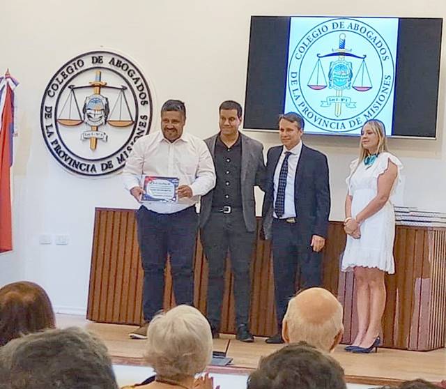 Así, el evento tuvo lugar el pasado jueves 14 de noviembre, en la sede del Colegio de Abogados de Misiones, en Posadas, con la presencia del galardonado al igual que distintas autoridades y colegas que acompañaron el homenaje.
